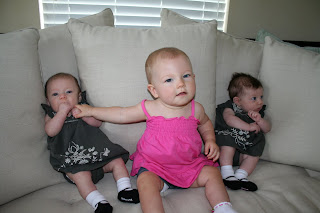 Lauren was a superb traveler and it definitely helped that we drove in the early evening. We stopped in Tallahassee for dinner at Cracker Barrel (Lauren had green beans, stewed carrots, chicken and dumpings and a biscuit) and then continued the remaining 4 1/2 hours. We arrived at 1am EST and Mary and I stayed up until 4am changing diapers and holding and feeding the babies. Kaylee and Ashlynn are 13 weeks old and each weigh in the upper 9 lbs and they were bigger than I was expecting them to be! They are so healthy and beautiful and I missed them so much! That 1st night was the longest that Mary and I had gotten to talk since the girls had been born and it felt so good to be back in O-town...